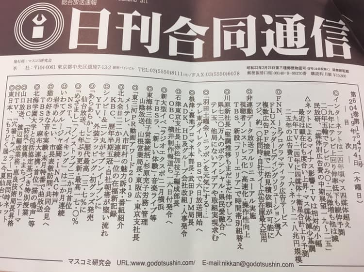 日刊合同通信というテレビ業界向けの業界誌があって、所々で回覧されていたりするのですが、ここの見出しにヘッダービディングという言葉が掲載されたらちょっと面白いかもと思ってリリースを配信してみた所、2番目の項目に載せてもらえました。